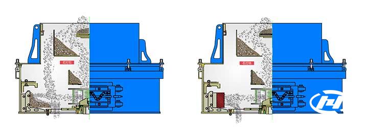 1)轉(zhuǎn)子中的拋料頭尖塊磨損板的不均勻磨損(偏上或偏下) 大都是由于料板的角度不合理引起的;有時(shí)是由于破碎積料過(guò)多造成的。