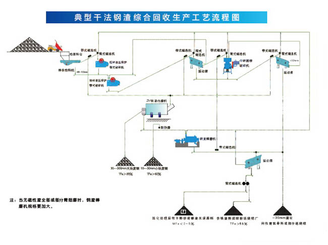 針對各鋼鐵企業(yè)的特點,公司分別研制出了干法和濕法兩種鋼渣高效綜合回收利用生產(chǎn)工藝和成套設(shè)備,其生產(chǎn)能力達(dá)30~200萬噸/年,可供廣大鋼渣處理廠選擇,使鋼渣得到高效綜合利用實現(xiàn)零排放,為鋼鐵企業(yè)實現(xiàn)循環(huán)發(fā)展,建設(shè)節(jié)約型企業(yè)提供成套高效節(jié)能工藝和設(shè)備保障。