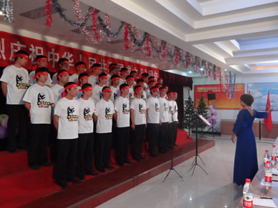 此次歌詠比賽由辦公室穆云紅、供應部劉華賓主持,董事長苗三周、總經(jīng)理張紅彥、副總經(jīng)理程自強、副總經(jīng)理郭學師、黨支部書記王獻宏、博林分廠經(jīng)理蘆繼鋒、工會主席黃麗華擔任評委?!爸孕淖T競ゴ蟮淖鎳臃睒s富強,祝愿我們公司興旺發(fā)達,祝愿……”在苗董事長的祝福聲中,比賽正式拉開帷幕。參賽選手們以抖擻昂揚的精神風貌,用高亢嘹亮的歌聲,或慷慨激昂,或深情豪邁,或樸實自然,或熱情奔放地將大華人對祖國的贊美與熱愛之情融入到每一首歌曲中,《走向復興》、《永遠不回頭》、《中國人民解放軍進行曲》、《國家》、《保衛(wèi)釣魚島》等等,一首首膾炙人口的經(jīng)典革命歌曲,掀起了一個又一個高潮,充分表達了大華人振興中華、富國興企的堅定信心與決心。