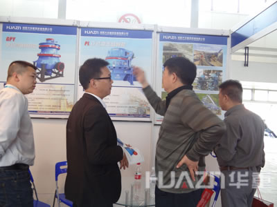 2、同行業(yè)參展商都比較重視此次展會,如鼎盛、山美、大宏、南方路機、冀東裝備等相關廠家都設計了精裝展位展示,而且還準備了生產(chǎn)線等演示沙盤來全方位的展示自己產(chǎn)品的優(yōu)越之處。整體展位廣告也比較突出,視覺傳達也比較清晰,而且鼎盛展示了自己的新產(chǎn)品轉子離心式破碎機(產(chǎn)品)。
