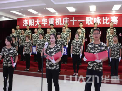 在國(guó)慶節(jié)來(lái)臨之際,為慶祝中華人民共和國(guó)成立65周年,9月30日下午兩點(diǎn),我洛陽(yáng)大華重機(jī)公司特舉辦“迎國(guó)慶、頌歌獻(xiàn)給祖國(guó)”歌詠比賽。旨在傳播愛(ài)國(guó)主義教育,加強(qiáng)企業(yè)文化建設(shè),激發(fā)員工愛(ài)國(guó)熱情和干事業(yè)、謀發(fā)展的激情,增強(qiáng)公司員工隊(duì)伍的凝聚力、向心力,展示我公司員工積極向上的新風(fēng)貌。