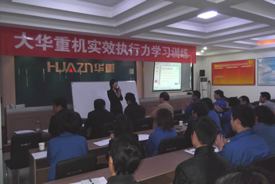 2011年9月19日,下午14時(shí)整,一場(chǎng)主題為“實(shí)效執(zhí)行力”的培訓(xùn)課在洛陽(yáng)大華重型機(jī)械有限公司四樓會(huì)議室如期舉行,參加培訓(xùn)的有公司中高層80余名管理人員,這是大華重機(jī)切實(shí)推行“學(xué)習(xí)型企業(yè)”建設(shè)的具體實(shí)施活動(dòng)之一。