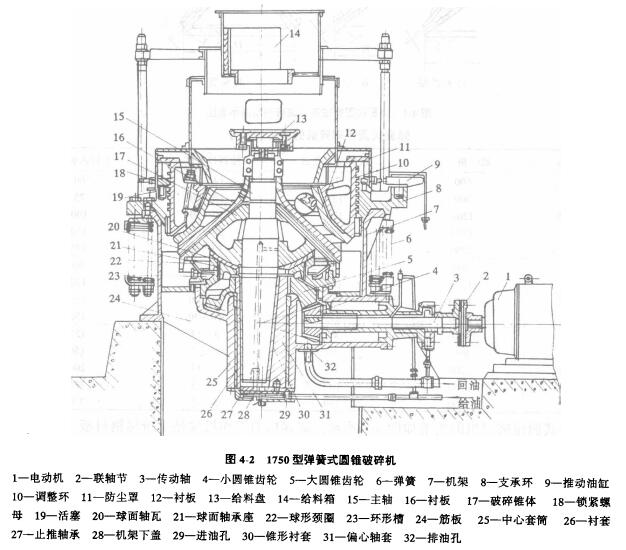 彈簧式圓錐破碎機(jī)具有破碎比大、效率高、功耗少、產(chǎn)品粒度均勻和適于破碎硬物料等特點(diǎn),所以當(dāng)今世界各國仍廣泛地采用,并對(duì)它進(jìn)行了改進(jìn),采用液壓裝置等,使它更加完善。