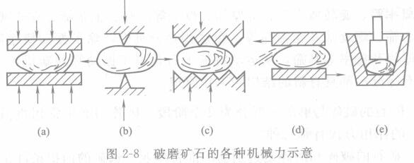 目前,礦石的破碎與磨碎的方法主要還是借肋機(jī)械力的作用,較常見的機(jī)械作用力大致有以下五種,如圖2-8所示。