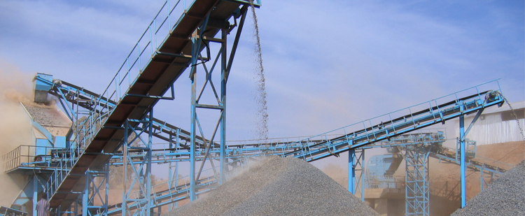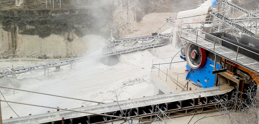 花崗巖大塊物料經(jīng)料倉由振動給料機(jī)均勻喂料,輸送到顎式破碎機(jī)進(jìn)行粗碎,粗碎后的物料經(jīng)振動篩篩分后,由皮帶輸送機(jī)輸送至反擊式破碎機(jī)或圓錐破碎機(jī)進(jìn)行中細(xì)碎。